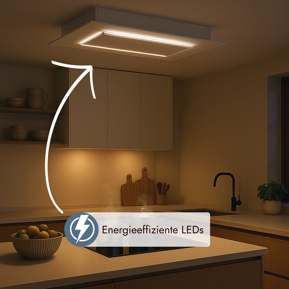 - Ausstattung: Randabsaugung, Fernbedienung und LED-Beleuchtung