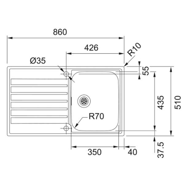 - Spülenmaß: 860x510 mm