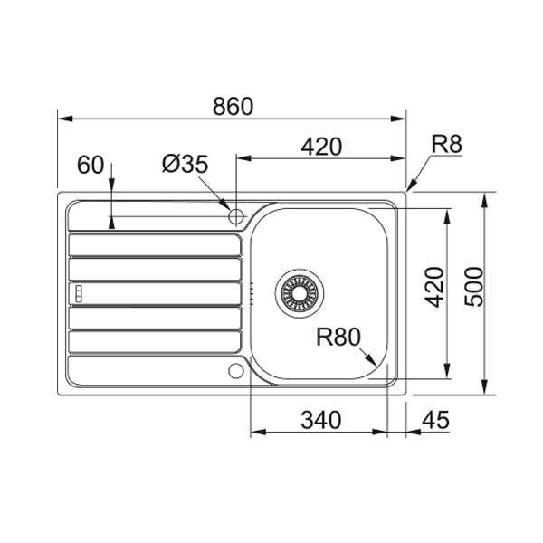 - Spülenmaß: 860x500 mm