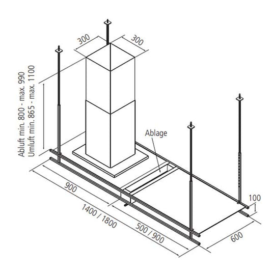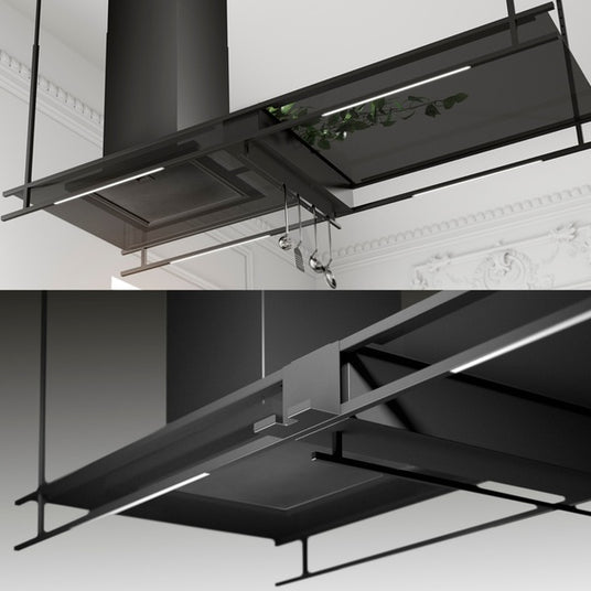 Inklusive: Aluminium Fettfilter Schwarz, Ablage und Relingstange, Fernbedienung, Montageanleitung