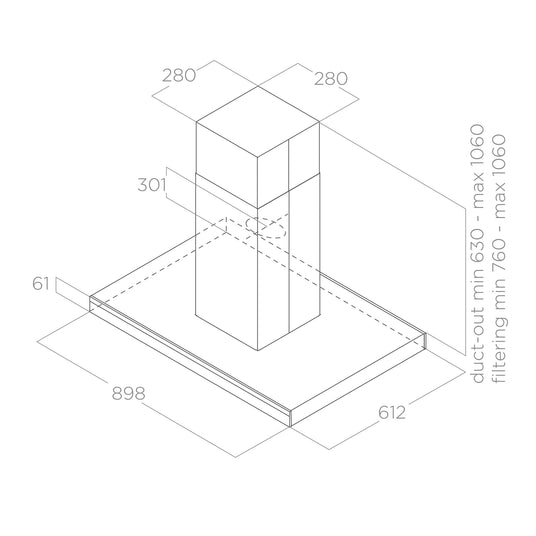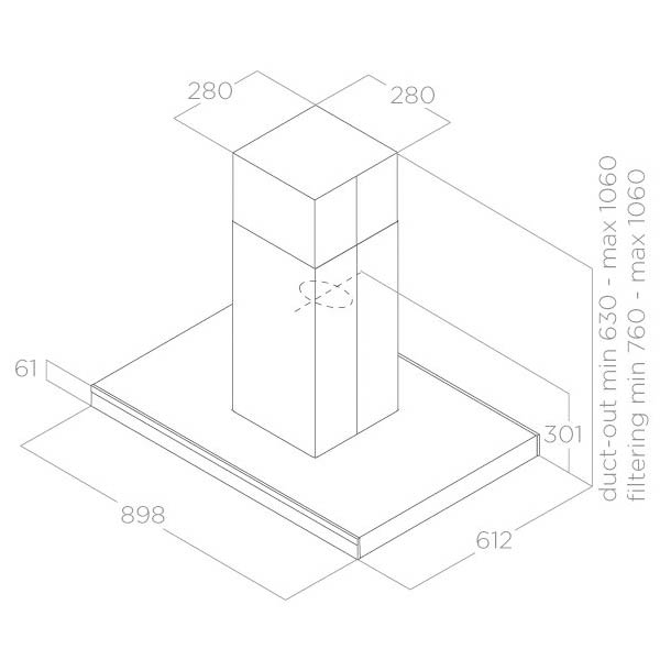 Die Haube misst 90 x 60 cm und eignet sich somit optimal für große Kochfelder und