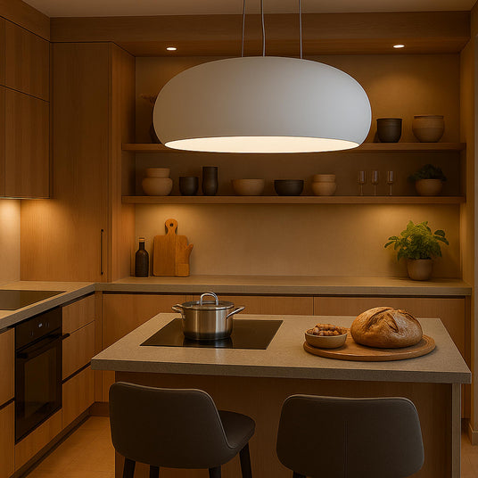 Seashell ist eine freihängende Abzugshaube die durch ihre großzügigen Maße besticht. Dank denen ist sie vor allem für geräumige Inselküchen geeignet. Sie kombiniert auf perfekte Weise die doppelte Funktion von Abzugshaube und Leuchte: das integrierte Randabsaugungssystem beeindruckt mit hoher Leistung während die runde Form und der breite Lichtkegel eindeutig an eine Hängeleuchte erinnnern.