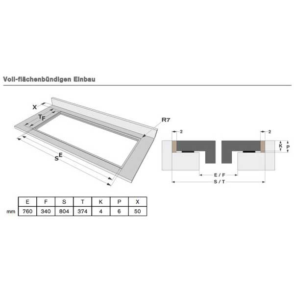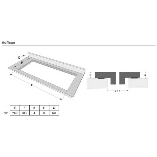 - Zur Auflage oder zum flächenbündigen Einbau. Das Kochfeld steht dann um die Höhe der Facette mit ca. 3 mm über das Niveau der Arbeitsplatte heraus. Durch die sichtbare Schliffkante ergibt sich eine sehr hochwertige Optik. Die Gefahr durch ein Absplittern des Glases durch Berührungen mit einem Topf ist aufgrund der gehärteten Glaskeramik äußerst gering. Diese Einbau ist neben der ansprechenden Optik vorteilhaft für diverse Arbeitsplattenmaterialien, die Berührungen eines heißen Topfbodens nicht erlauben.