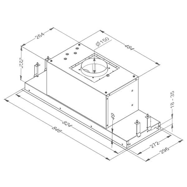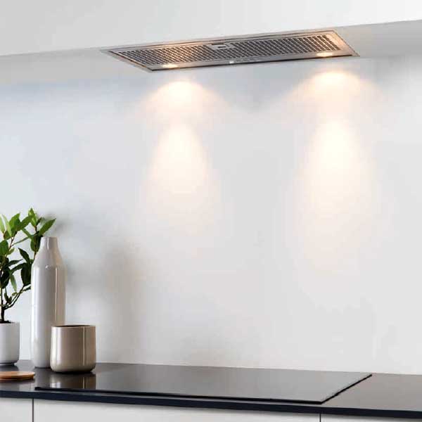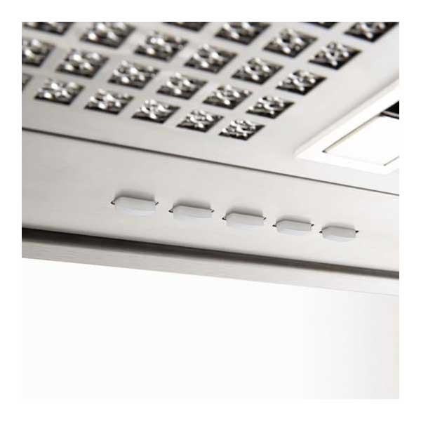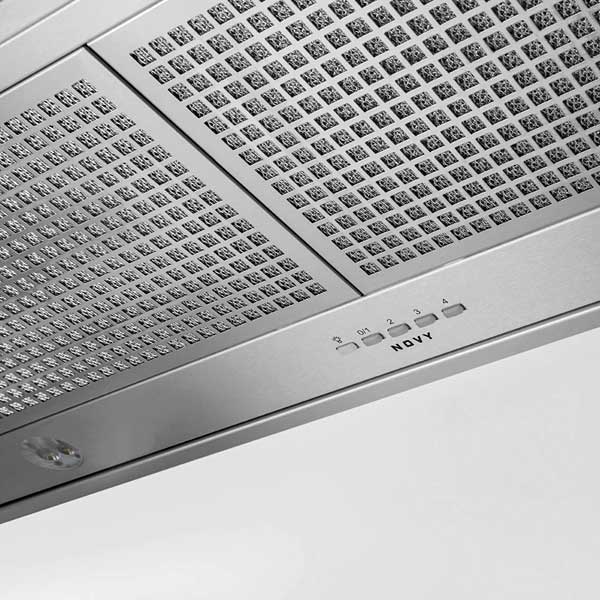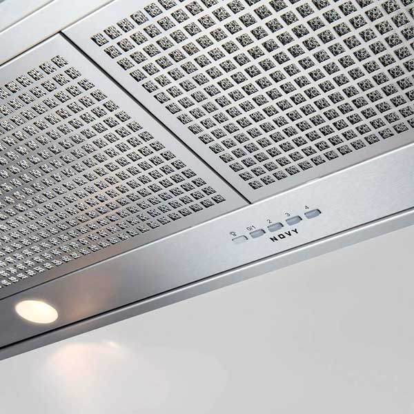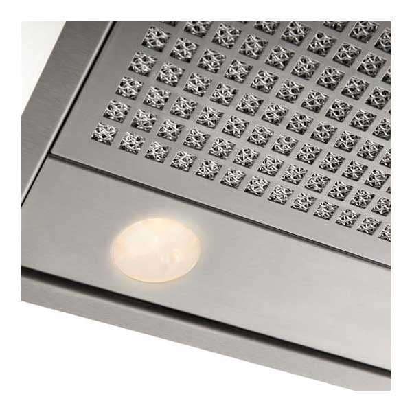 Der Lüfterbaustein kann in einen Trockenbau oberhalb des Kochfeldes montiert werden. Er hat eine 2 x 2 Watt LED-Beleuchtung; diese sorgt für ausreichend Licht beim Kochen. Der Fettfilter kann leicht entnommen und alle 4 - 6 Wochen im Geschirrspüler gereinigt werden. Um einfach die Dunsthaube zu bedienen, ist eine weiß beleuchtete Schaltung hinten an der Dunsthaube zu finden. So sind die 3 Effektivstufen + Intensivstufe für starke Dunstentwicklung leicht zu bedienen.