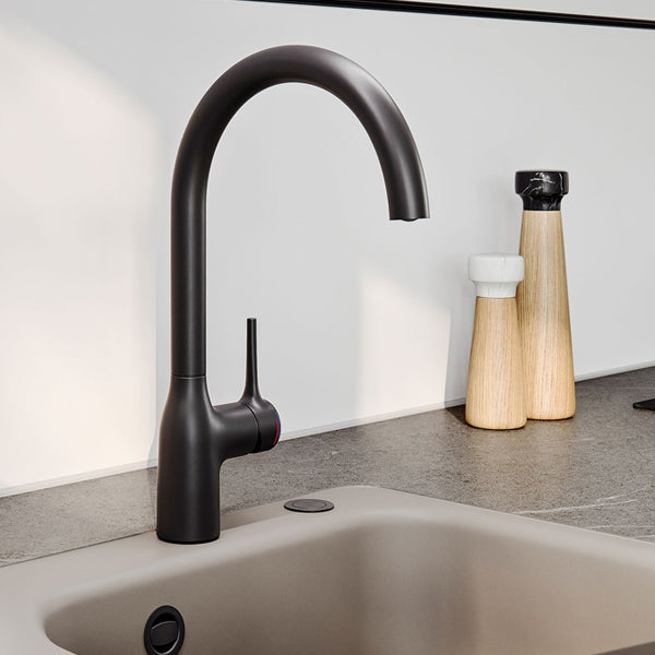 Die Mania Soft ist in einer Vielzahl an Oberflächen erhältlich, die jeden Einrichtungsstil optimal ergänzen. Mattgold strahlt luxuriösen Glanz aus und fügt sich perfekt in eine opulente Umgebung ein. Das klassische Chrom harmoniert mit modernen, minimalistischen Küchen, während tiefes Schwarz in industriellen oder Art-Deco-Räumen für einen spannenden Akzent sorgt. Mit dem Edelstahl-Finish setzen Sie auf eine robuste, langlebige Lösung, die besonders gut zu skandinavischen oder rustikalen Landhausküchen passt.