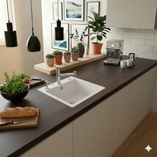 - Einbauweise: Flächenbündige Spüle