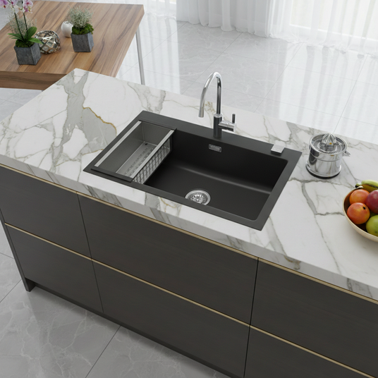 - Maße der Spüle: 77,6 x 48,6 cm (B x T)