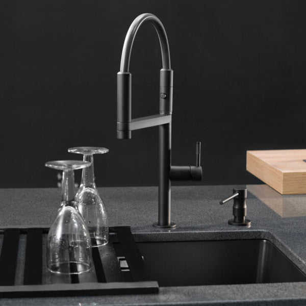 Als Hochdruck-Armatur liefert die Move von Systemceram konstant starken Wasserdruck – ideal für schnelles Spülen und effizientes Arbeiten in der Küche. Die Kombination aus ästhetischem Design und praktischer Funktionalität macht sie zur perfekten Wahl für Hobbyköche und Designliebhaber gleichermaßen.