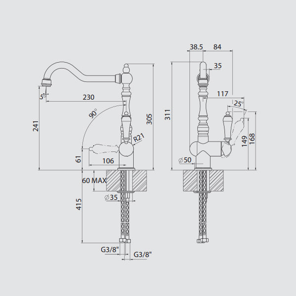 Die Rubi Küchenarmatur von Systemceram vereint den zeitlosen Charme des Landhausstils mit moderner Technik. Ihr klassisches Design überzeugt durch weiche Linien und liebevolle Details, die an traditionelle Landhausküchen erinnern, ohne auf zeitgemäße Funktionalität zu verzichten. Hochwertige Materialien und eine sorgfältige Verarbeitung machen diese Armatur zu einem echten Blickfang in Ihrer Küche. Ob in einem rustikalen oder einem modernen Ambiente – die Rubi Küchenarmatur fügt sich harmonisch in jede Einrichtung ein. Die warmen Oberflächen und die raffinierte Formgebung unterstreichen den individuellen Charakter Ihrer Küche und sorgen dafür, dass Funktionalität und Ästhetik in perfekter Balance stehen.