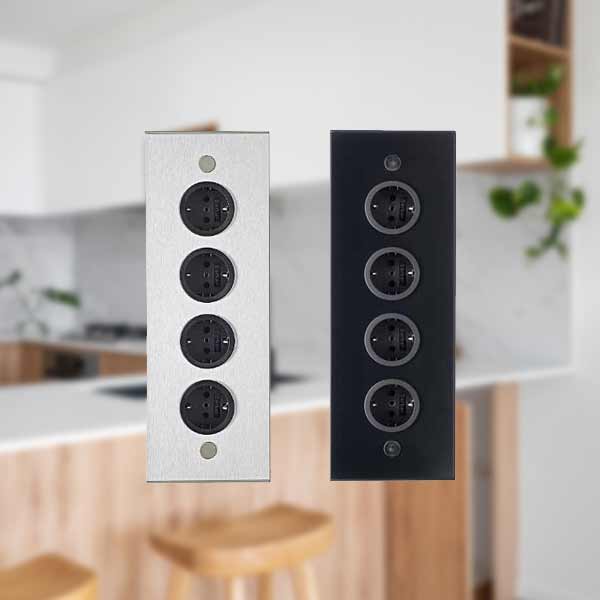 Die Thebo Tesi 4-fach Steckdose ist in Schwarz und Edelstahl erhältlich, sodass sie perfekt zu Ihrem persönlichen Stil und Ihrer Inneneinrichtung passt. Ob in der Küche, im Büro oder im Wohnzimmer - diese 4-fach Eck-Steckdose sorgt für einen sauberen und aufgeräumten Look.