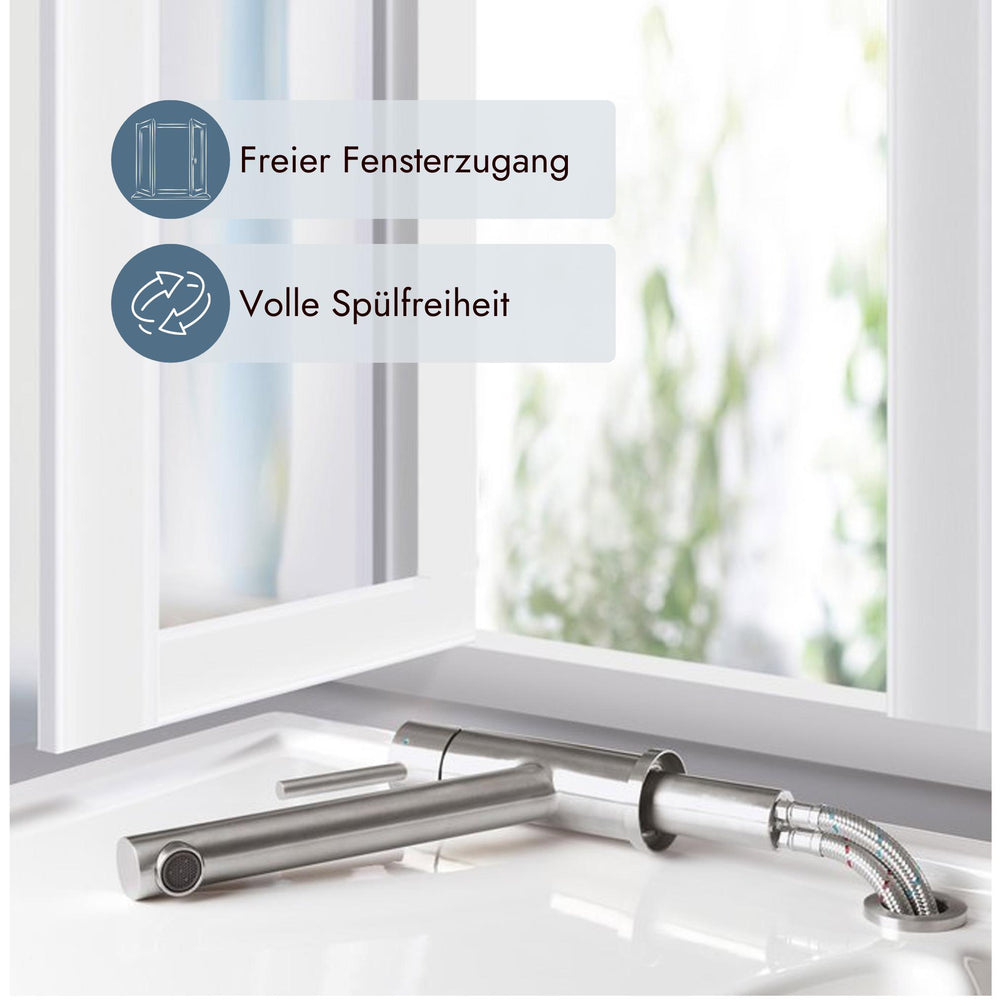 Wie funktioniert die abklappbare Armatur bei einem Fensterplatz?