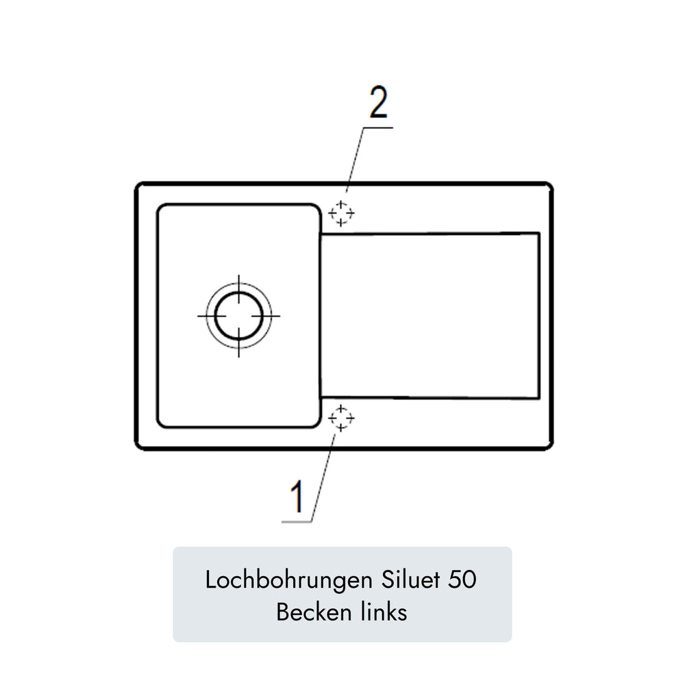 Welches Ausschnittmaß wird für die Arbeitsplatte der Siluet 50 benötigt?