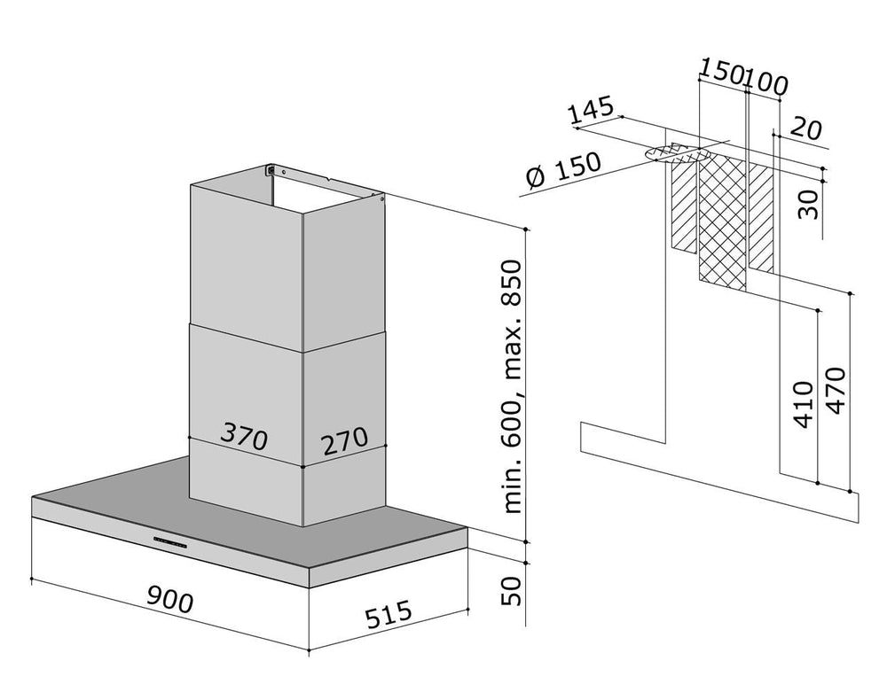 - Luftausgang: 150 mm