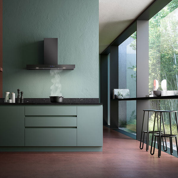 Die Falmec Mercurio Dunstabzugshaube vereint stilvolles Design mit außergewöhnlicher Funktionalität, was sie zu einem exemplarischen Beispiel für das hervorragende Preis-Leistungs-Verhältnis macht, das Falmec bietet. Erhältlich in einem komplett schwarzen Look oder in klassischem Edelstahl, fügt sich diese Haube nahtlos in jede moderne Küchengestaltung ein. Die passenden schwarzen Metallfilter verstärken nicht nur die visuelle Präsenz, sondern unterstreichen auch die Qualität und Liebe zum Detail, die für Falmec typisch sind.