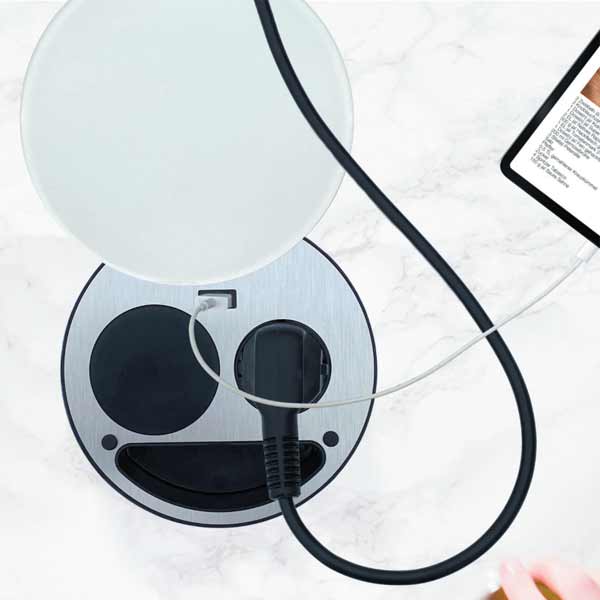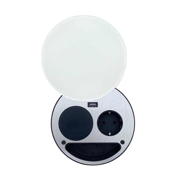 - Oder 1 Schutzkontakt-Steckdose, 1 USB-Anschluss (Typ A) und 1 Wireless-Charger (kabelloses Laden)