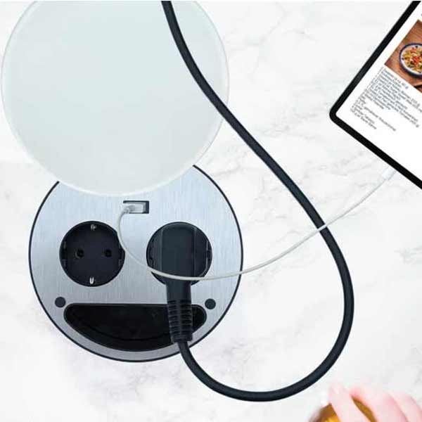 - Wahlweise mit 2 Schutzkontakt-Steckdose und einem USB-Anschluss (Typ A)